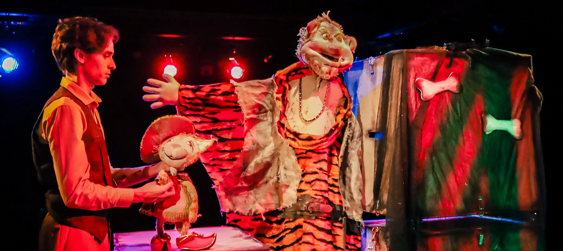 Вместе с Котом в сапогах дети преодолеют все препятствия, проявят хитрость и смекалку, помогут скромному мельнику стать настоящим маркизом де Карабасом и победят могучего великана-людоеда!
