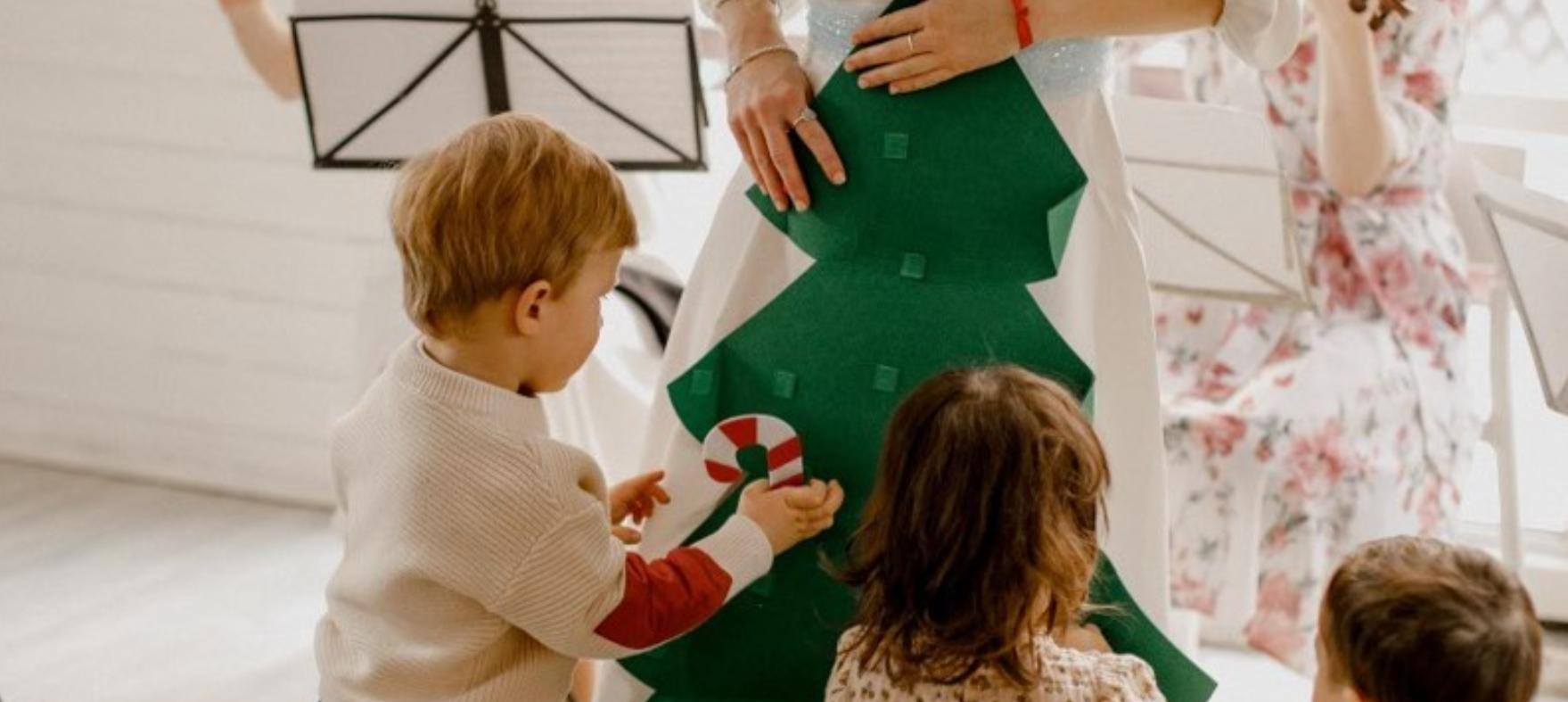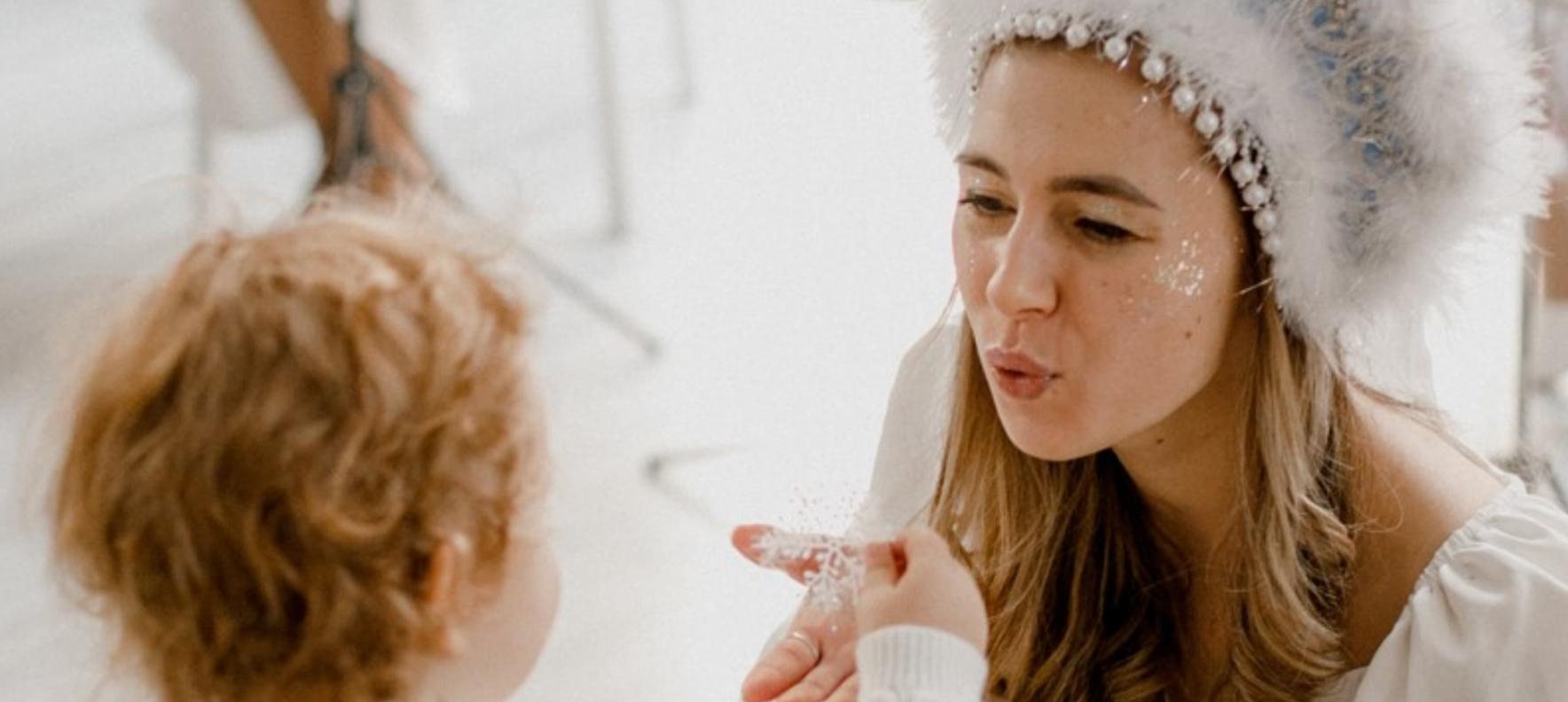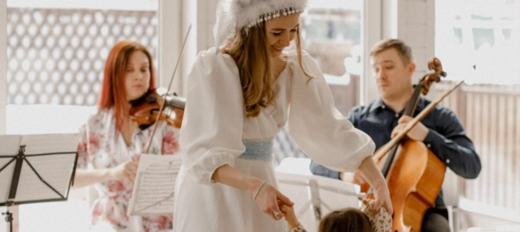 Трио скрипки, флейты, виолончели и ведущая в роли Снегурочки